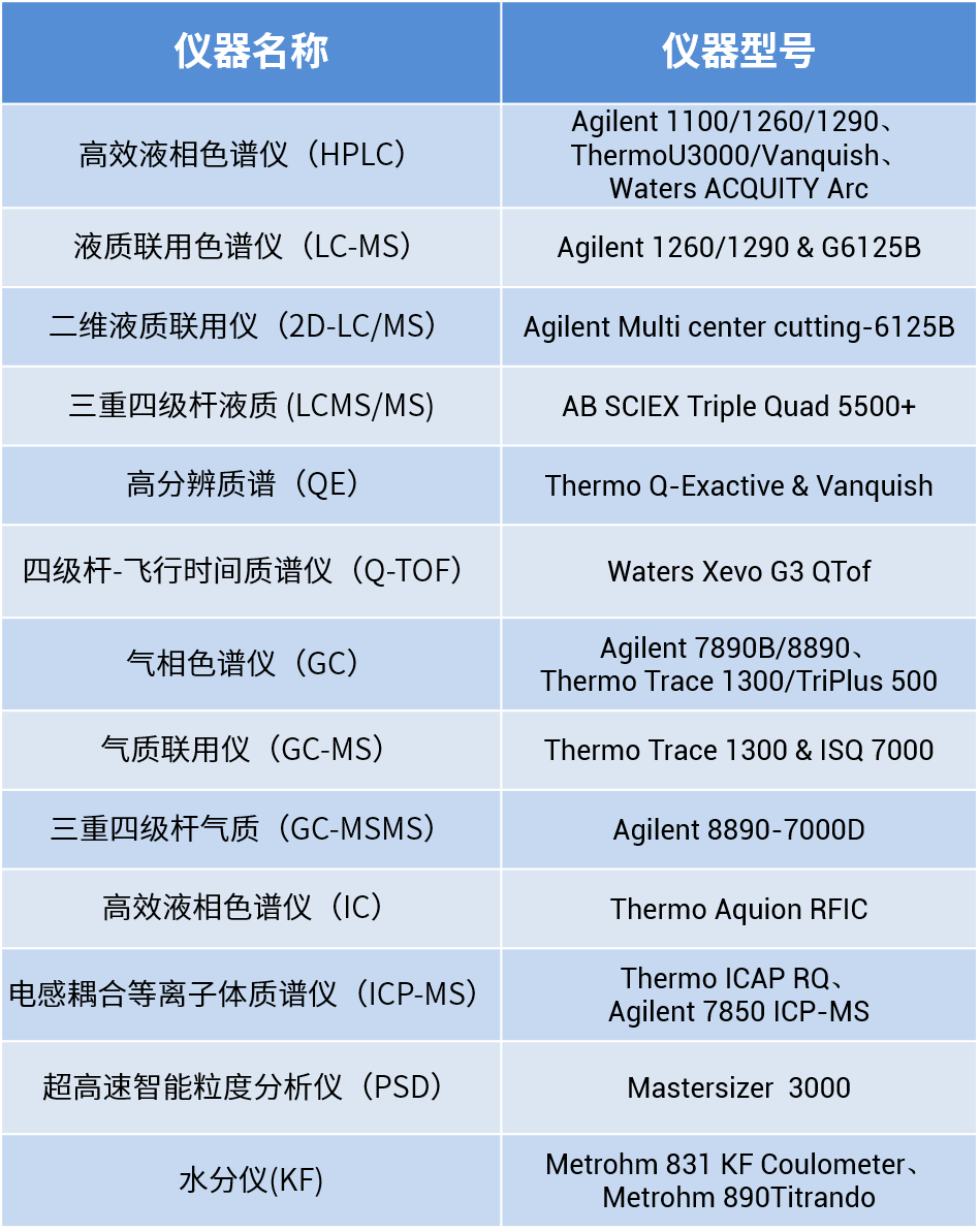 先进技术平台:配备UHPLC、HPLC、GC-MS/MS、LC-MS/MS、QE等尖端分析设备,满足从常规检验到复杂样品分析的各类挑战。